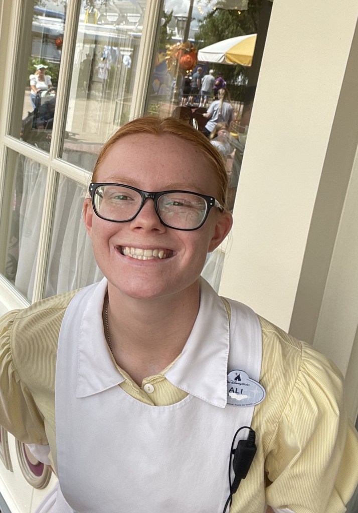 This time around, I was assigned a seater role at The Plaza Restaurant which was located back at my home park of the Magic Kingdom. I was beyond excited to be returning to Magic Kingdom because I had my custodial pals to see. This role was way different than custodial. On a daily basis, I would greet guests, help them check in for their reservations, seat them at their tables, and answer any questions they may have. I also learned how to keep up in such a busy industry; food and beverage. There were plenty of times where I got overwhelmed. From being behind on reservations to having five bar orders all come in at once, it got quite hectic to say the least. However, there were always amazing days that I would have. Whether it was giving out stickers to guests or talking to a guest who recognized where I was from, there was always something that would make a tough day end good.
